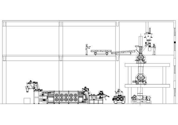 占地少、投資省減少開煉機(jī)的使用臺數(shù)及降低機(jī)型規(guī)格,同時降低了膠片冷卻設(shè)備的機(jī)型規(guī)格,并且布局更緊湊,車間占地少,節(jié)省土建投資。自動混煉。可接入MES系統(tǒng),實(shí)現(xiàn)數(shù)字化和智能化管控。